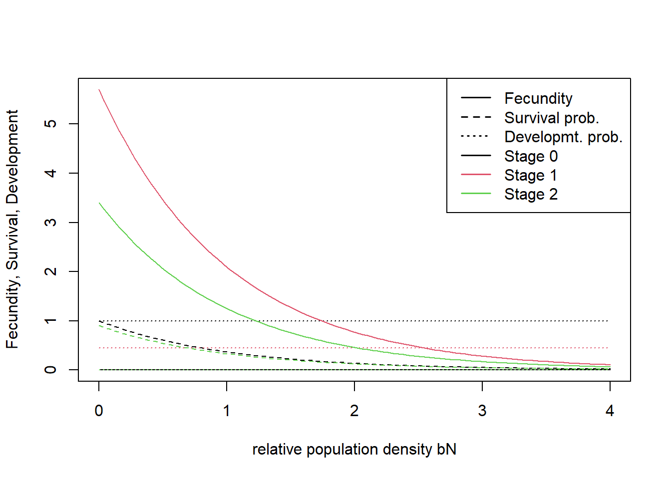 demo <- Demography(Rmax = 2.2, ReproductionType = 1, PropMales = 0.45)
