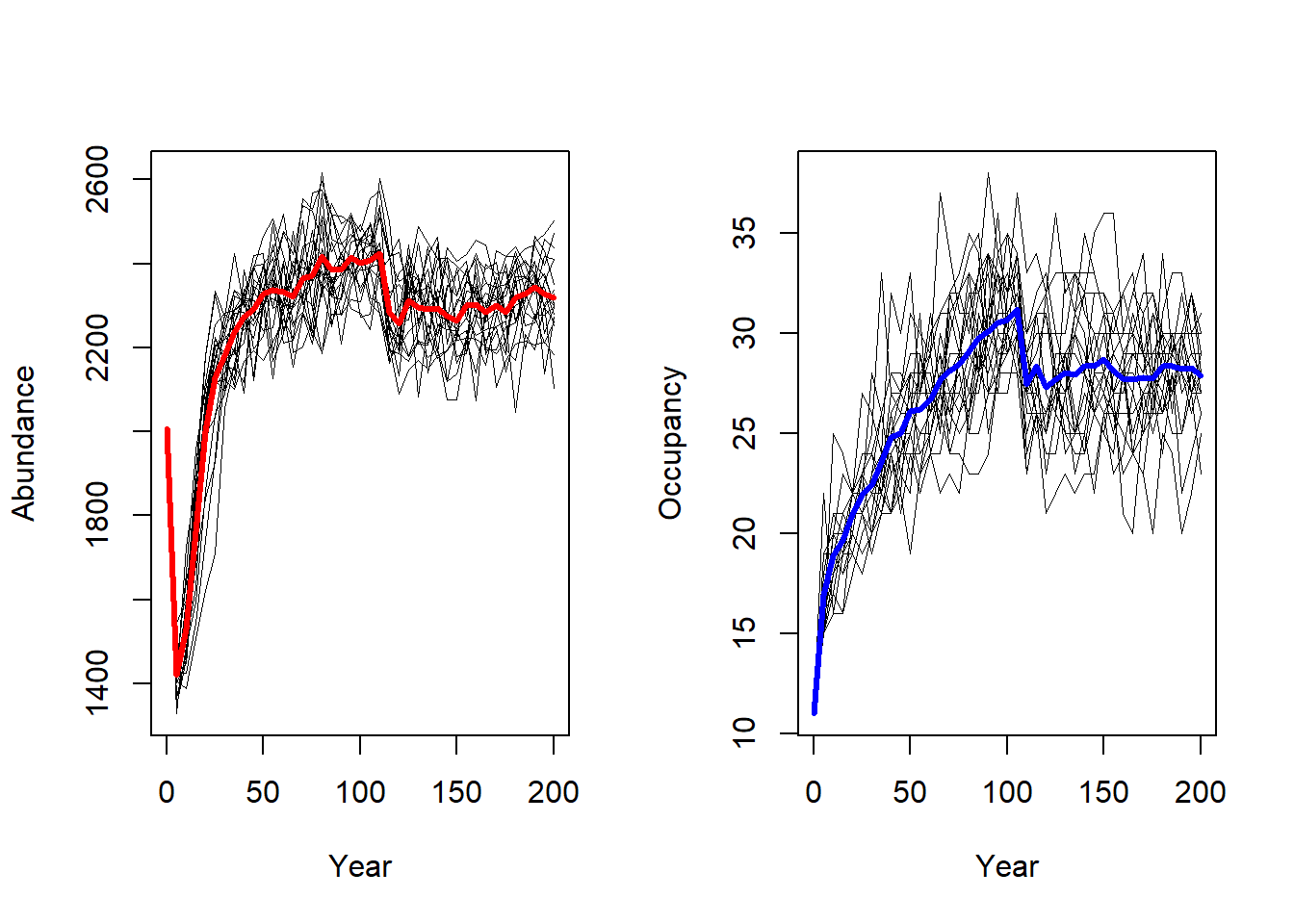 Let’s look at the occupancy probability and time to colonisation