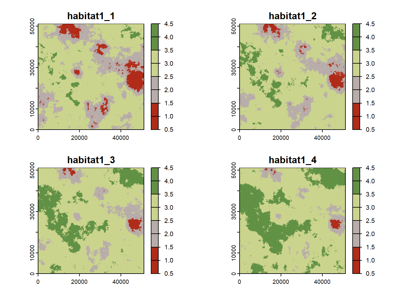 habitat_maps <- terra::rast(sapply(1:4, FUN=function(n){terra::rast(paste0(dirpath,"Inputs/map_0",n,".asc"))}))
