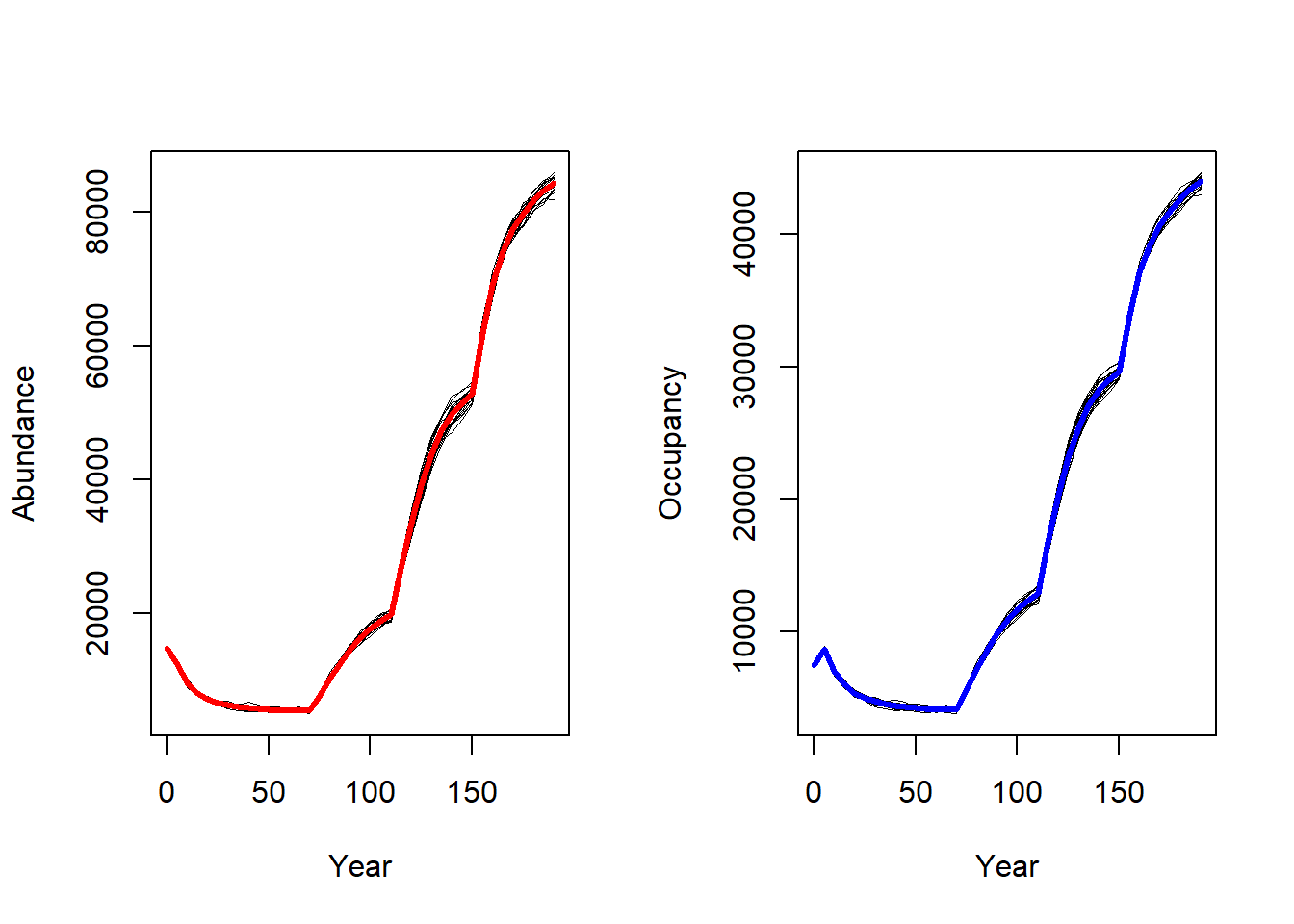 The abundance and occupancy time series haven’t been affected much.